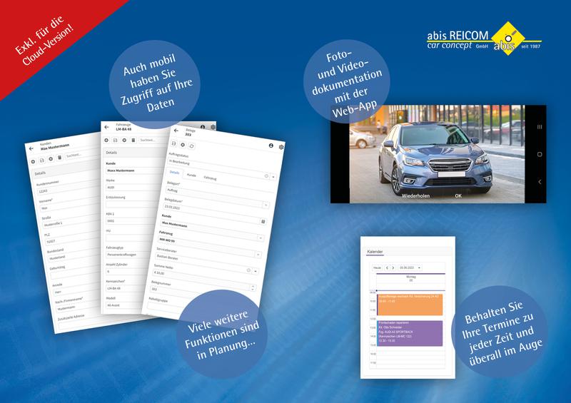 - Kostenfreie Datenübernahme aus abis KFZ: Kunden, Fahrzeuge, Rechnungen, Bildverwaltung, Reifeneinlagerung, Ersatzteile und Leistungstexte